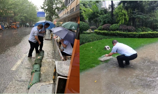 7月25日暴雨骤然而至,凯旋公馆物业人员迅速启动防洪应急预案,各部门分工协作,同步检查负一楼电梯厅、污水井、车辆出入口、楼顶排水及园区管网运行状况。雨势汹汹,很快,园区管网排水和车辆入口出现严重积水,形势紧迫。面对险情,队员们沉着应对,立即采取应急措施:疏通堵塞管道、加设防洪挡板、启动抽水泵……经过紧张有序的抢险,积水终于得到控制,园区安全度过暴雨危机。