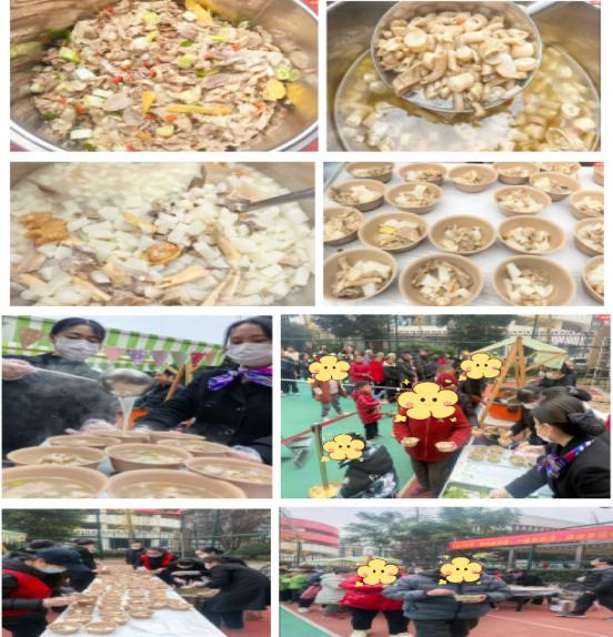 2025年12月20日下午13:00咱们的工作人员和志愿者进入烹饪关键阶段,大家分工协作,首先切肉、切萝卜炒制羊肉,并入汤熬煮。在众人的默契配合下,一锅锅新鲜美味的羊肉汤出炉了。