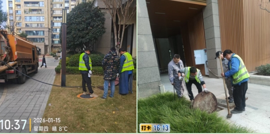 一次彻底的清掏,是对地下管网的一次“深度体检”与“健康维护”。美泉悦府物业服务中心将持续以专业、负责的态度,做好各项公共设施设备的养护工作,及时检查和疏通清理区域内的排污管道和化粪池等,为小区创造干净整洁的生活环境。