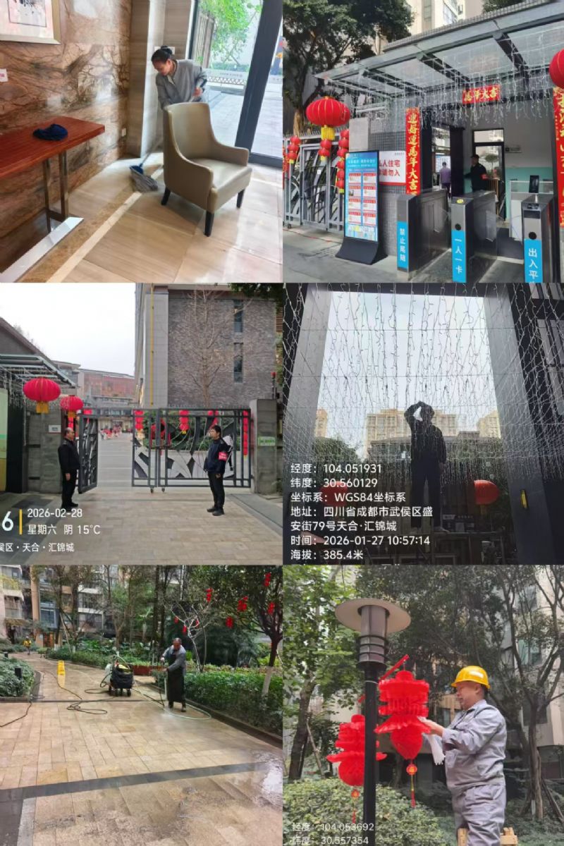 这个月,我们与团圆撞个满怀。大红灯笼在风中摇曳着节日的欢愉,春节离我们越来越近。看着您提着年货匆匆归家的背影,听着园区里孩童嬉闹的笑声,这便是我们守护的意义。我们用扫帚扫去旧岁的尘埃,用春联贴满新年的期许,用笔墨传递祝福,只为在这万家灯火的时刻,您的家,始终窗明几净,温暖如初。