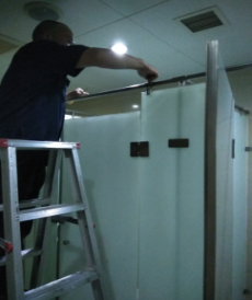 9月4日这一天,下午大概3点左右,凯旋广场客服中心接到一通报修电话。3号楼18楼女卫生间里面有人被反锁了,被反锁的女生没带手机,只好在里面喊保洁大姐帮她开门。保洁大姐帮忙试着开了很久没打开,只好打电话到前台报修。我接到电话后马上联系了补师,补师手上正在忙别的工作,一听说还有人出不来便暂时先放下了手中的工作,先到18楼卫生间,经查看是由于操作不当导致锁扣卡死。从外面没法打开,也不能踹门,因为怕把玻璃隔断门踹坏会伤到里面的人。补师找来一副单人梯打算从高处翻进去把门打开,在我眼里这样翻过门是很危险的。玻璃架构门,人从上面翻过去玻璃很容易承受不了重量碎掉。补师说没事,他会很小心,便义无反顾的爬上了梯子。补师慢慢翻过玻璃门后,终于把锁住已久的玻璃门打开了,大家露出了欣慰的笑容。