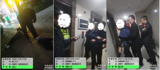 此时,男子似乎被巡逻员肩上的警示灯闪醒,恢复了一丝意识。经简短询问,确认为醉酒倒地。他含糊报出房号后,巡逻人员一边小心搀扶,一边联系其家人。