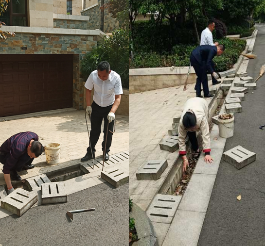 鸟语花香,绿树成荫,4月的麓湖之春随处都透露着生机。炎热的夏季即将到来,这意味着暴风雨很快就要来临了。我清楚的记得去年大暴雨到处被淹的场景,担心今年还会有暴雨,为了避免我们美丽的园区遭雨水淹没损坏。麓湖之春物业中心组织了秩序部门的同事们和保洁大姐一起,在4月28日这一天共同清理我们园区的排水沟,用他们勤劳的双手为即将到来的汛期做准备。